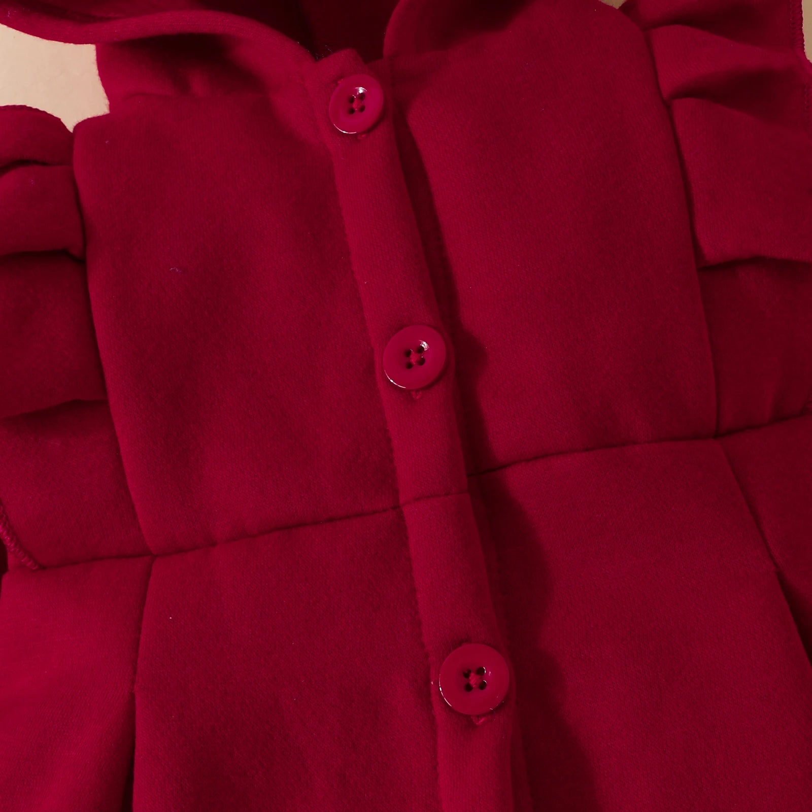 Baby Girl Ruffled Long Sleeve Fleece Hooded Single Breasted CoatKids Clothes