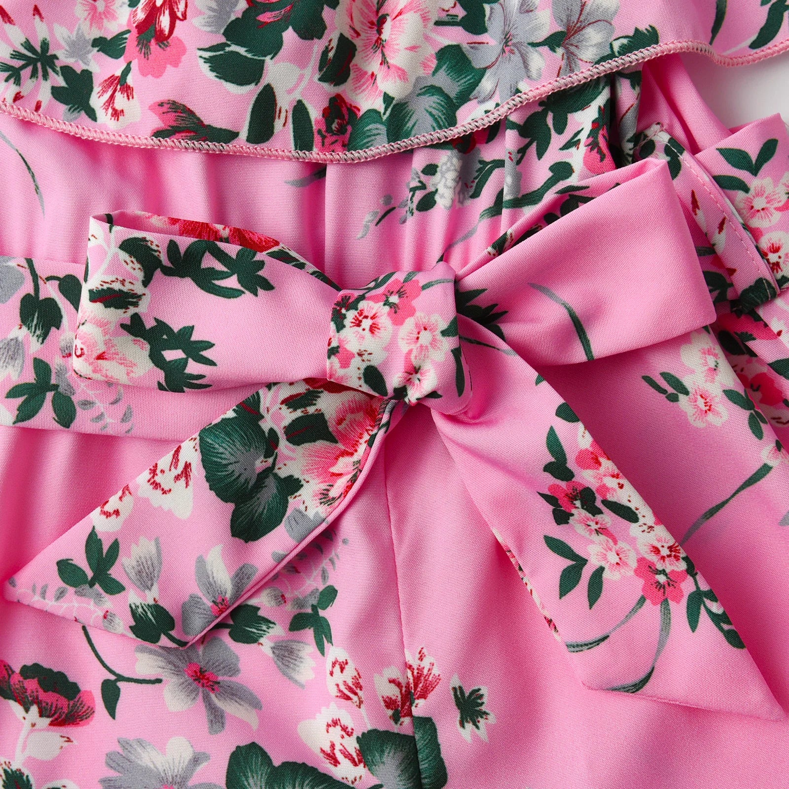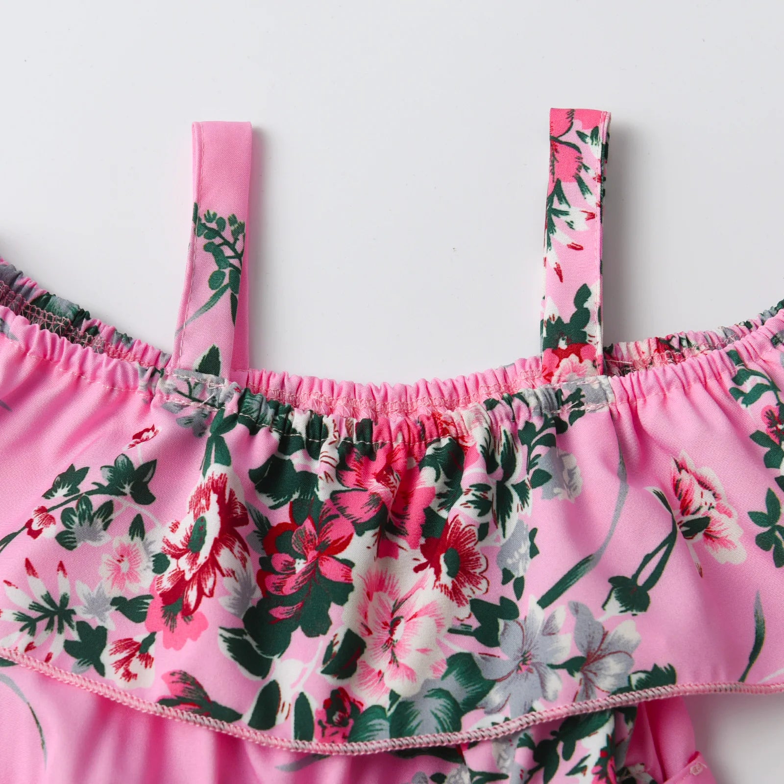 Children Clothing for Girls 1 2 3 4 5Y Kids Girls' Summer New Resort Style Floral Print Ruffled Camisole Jumpsuit with Lace-ups