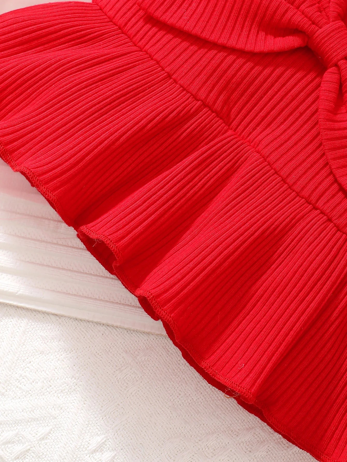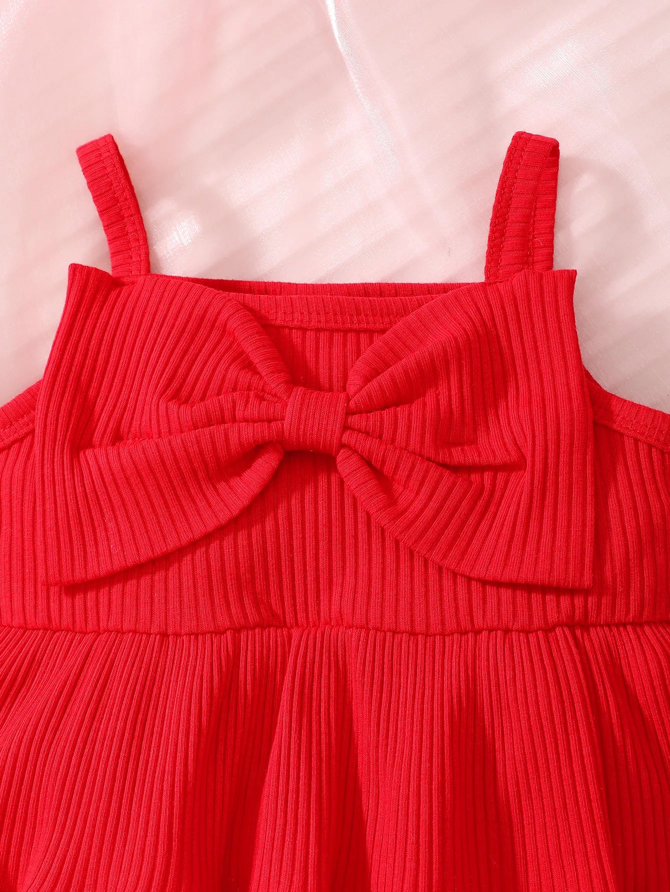 Newborn Girl Baby Summer Sleeveless Big Bow Solid Color Love Printed Pants Set 2 Pieces