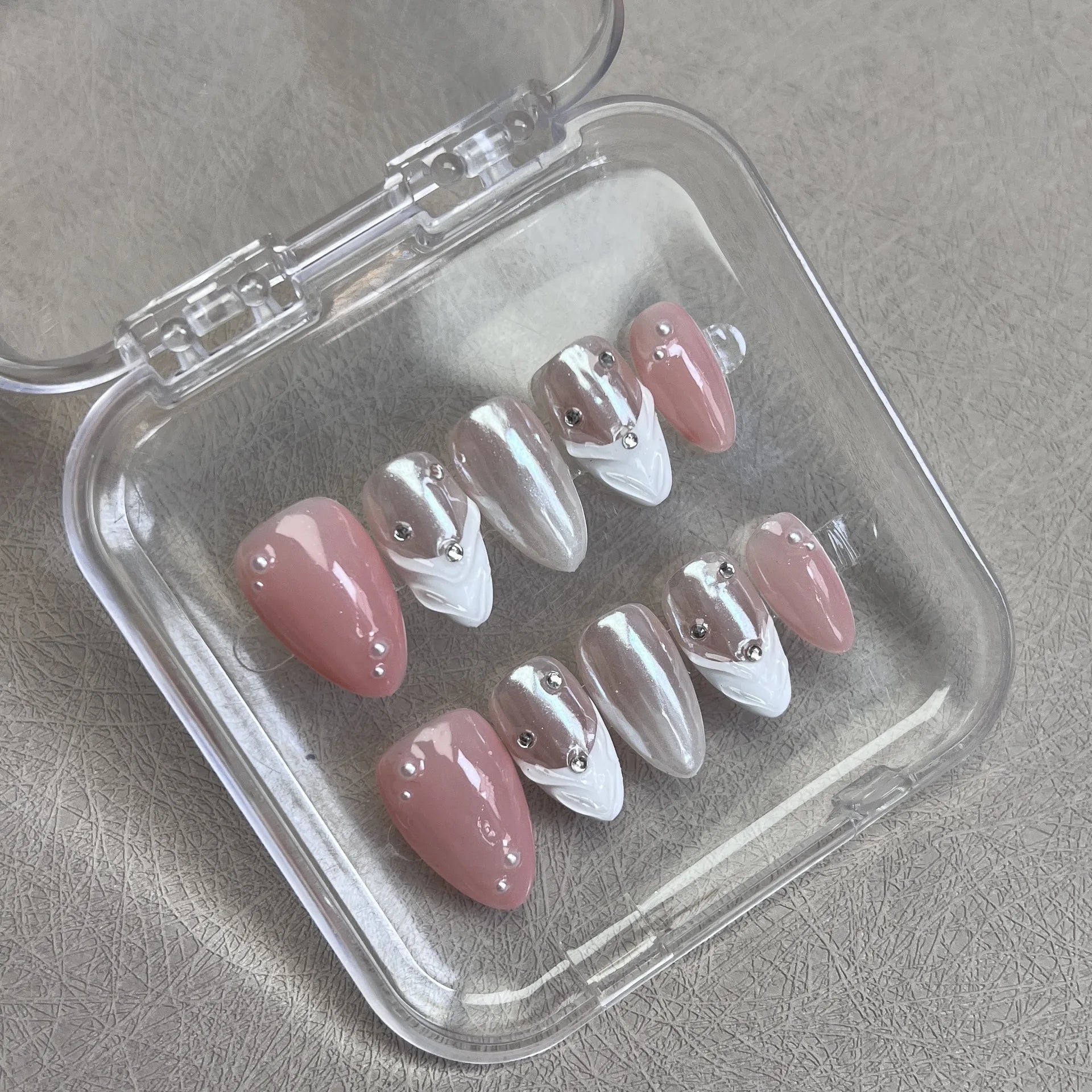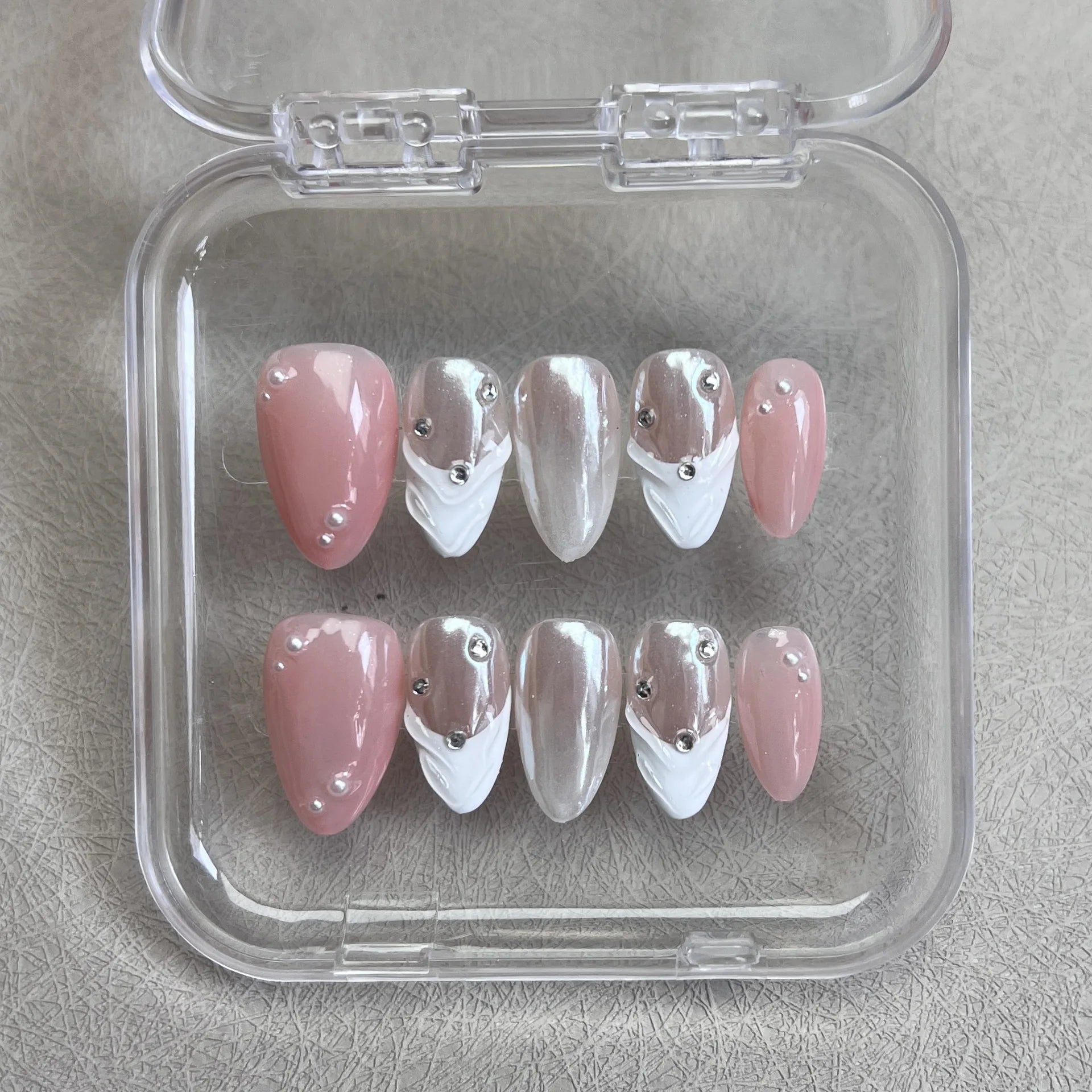 10pcs Handmade Press on Nails 3D Colorful Aurora Butterfly Design