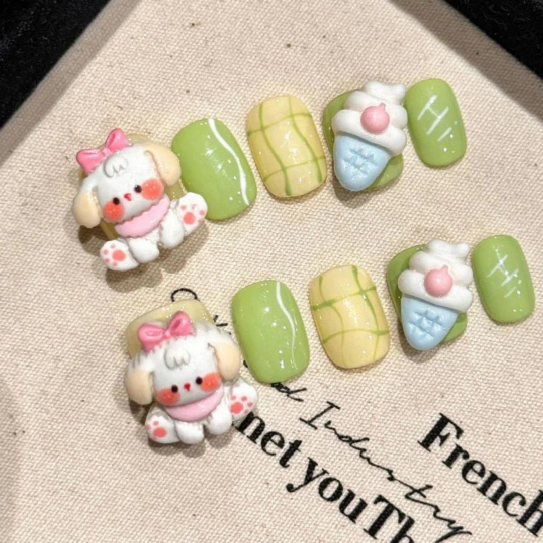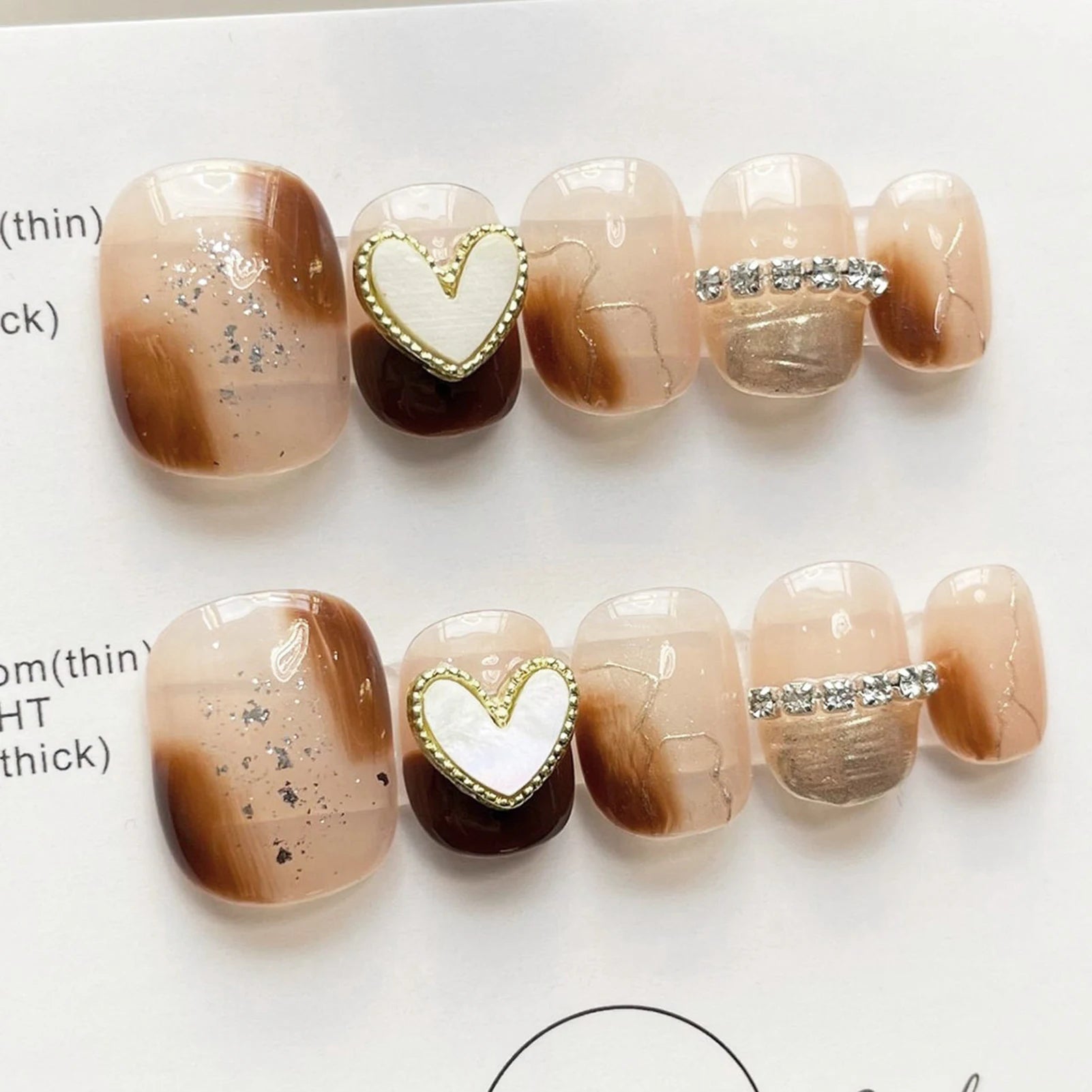 10Pcs Pink Cat's Eye Heart Design Fake Nails Short Round Head l