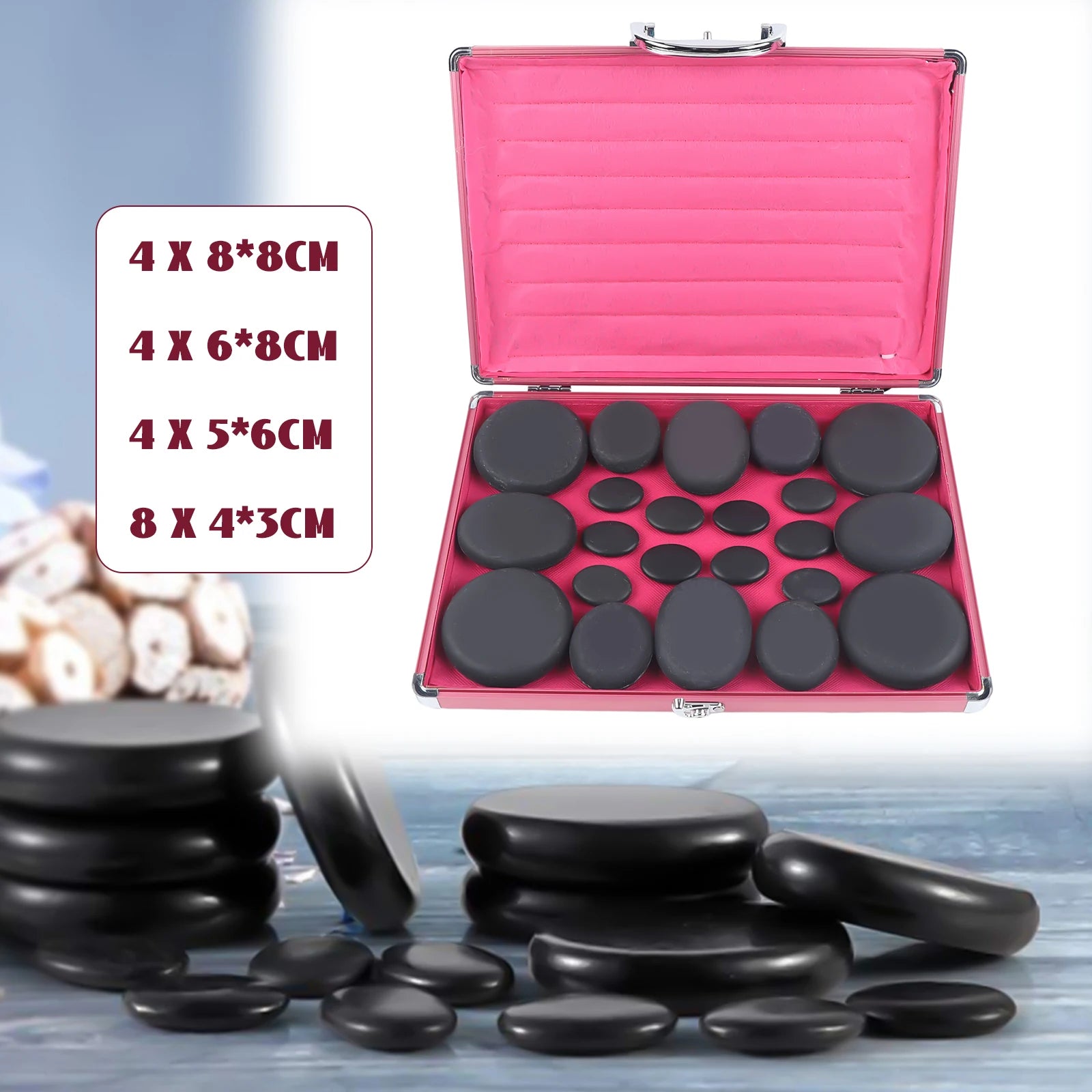 20 Piece Hot Stone Massage Set Massage Set with Heating Box Basalt