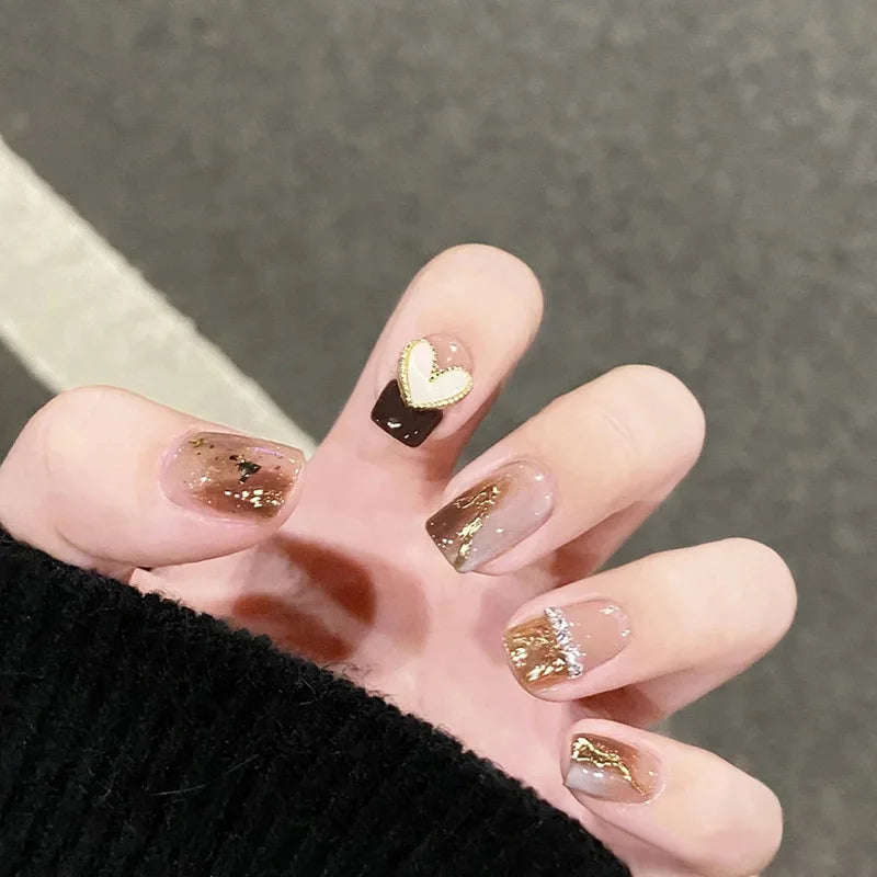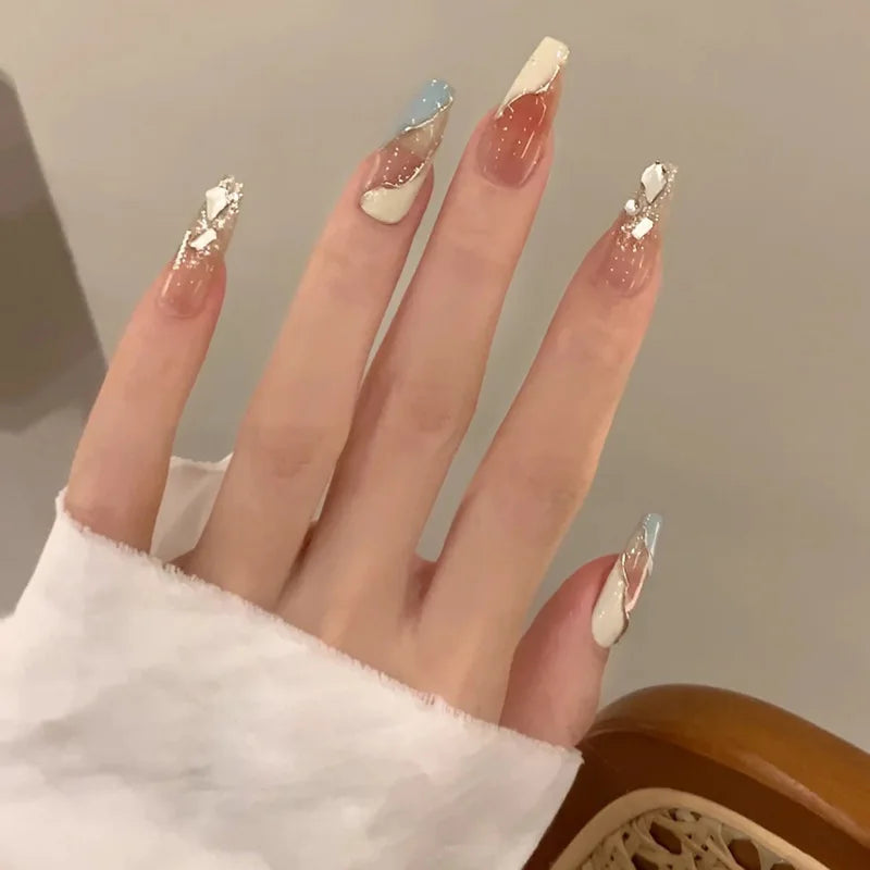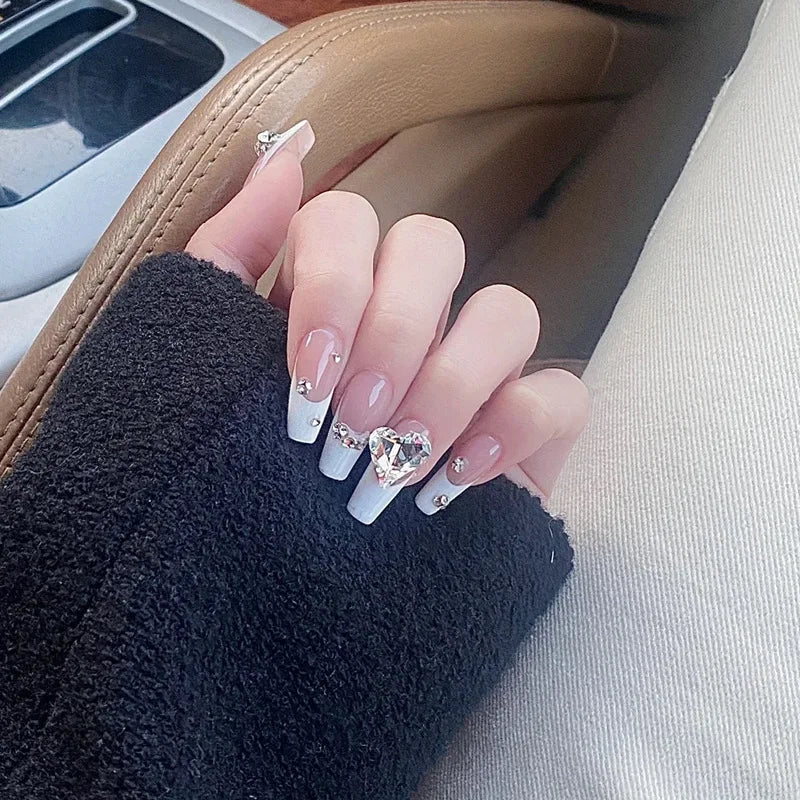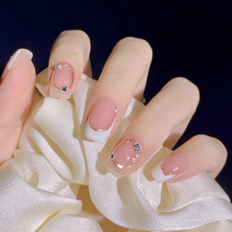 24Pcs Fake Nails Press On Tips Art Supplies Reusable Edhesive False For ABS Artificial Sith Adhesive Full Cover French Nail