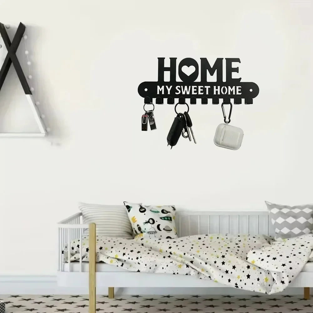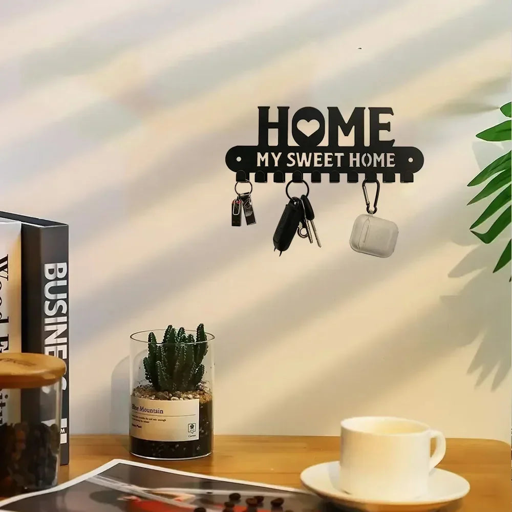 Elegant Black Metal Wall - Mounted Key Holder Hooks: An Exquisite Artistic Iron Coat Rack Ideal for Entryway and Kitchen Decor