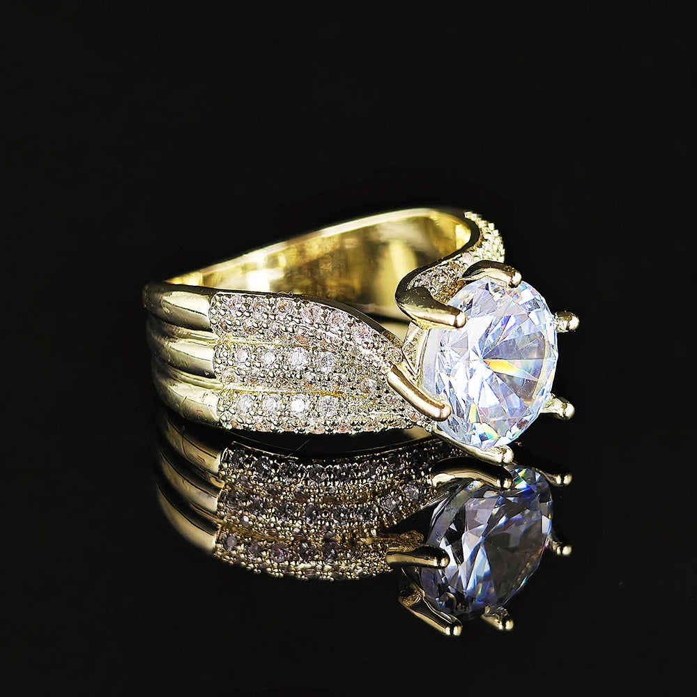 10MM Cubic Zirconia Wedding Bands Ring for Women Luxury Crystal CZ Ring Engagement Accessories New Arrival Trendy Jewelry R7851