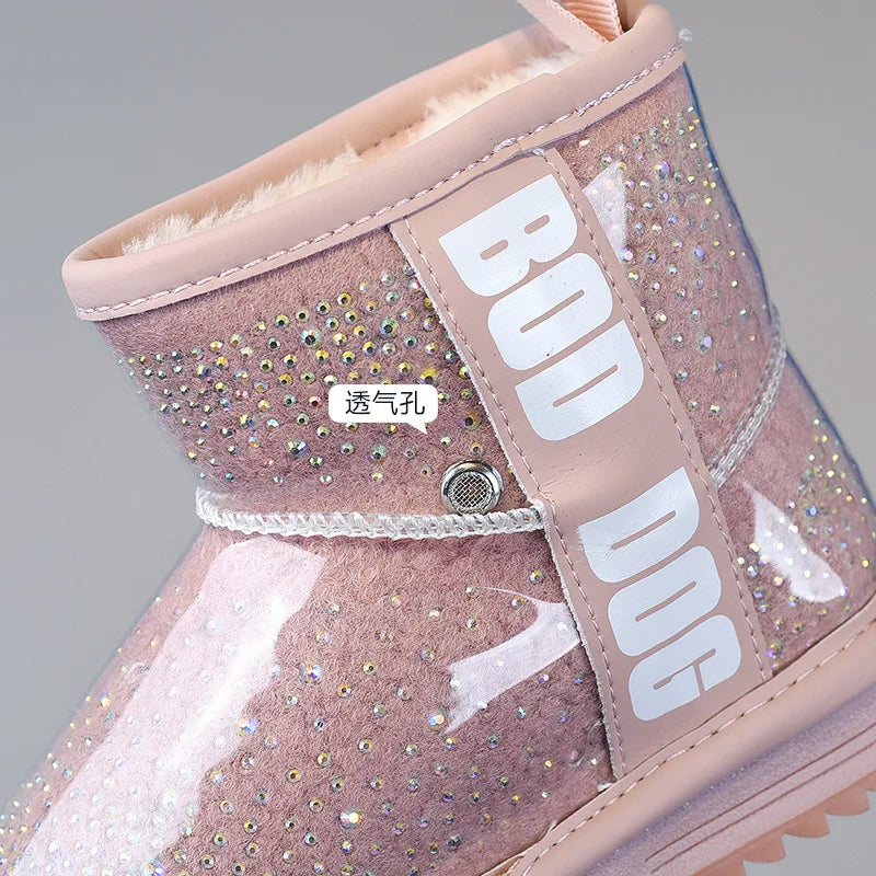 Children Shoes Luxury Designer Girls Boy Fashion Waterproof Upper Snow Boots Brand Baby Thick Plush Ankel High Warm Winter Boots