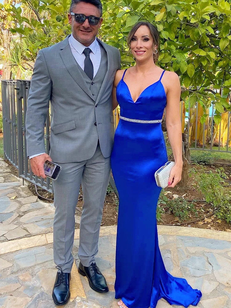 Deep V Neck Fuchsia Black Satin Maxi Dress Long Mermaid Bodycon Floor Length Open Back Stretch Cut Out Party Dress