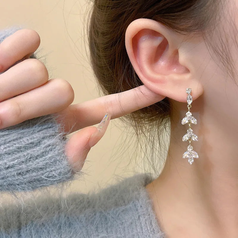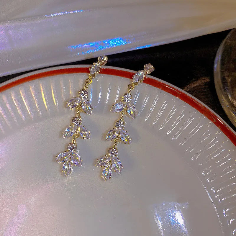 Fashion Trend Unique Design Elegant Delicate Luxurious Zirconia Leaf Tassel Earrings High Jewelry Wedding Party Gifts For Women