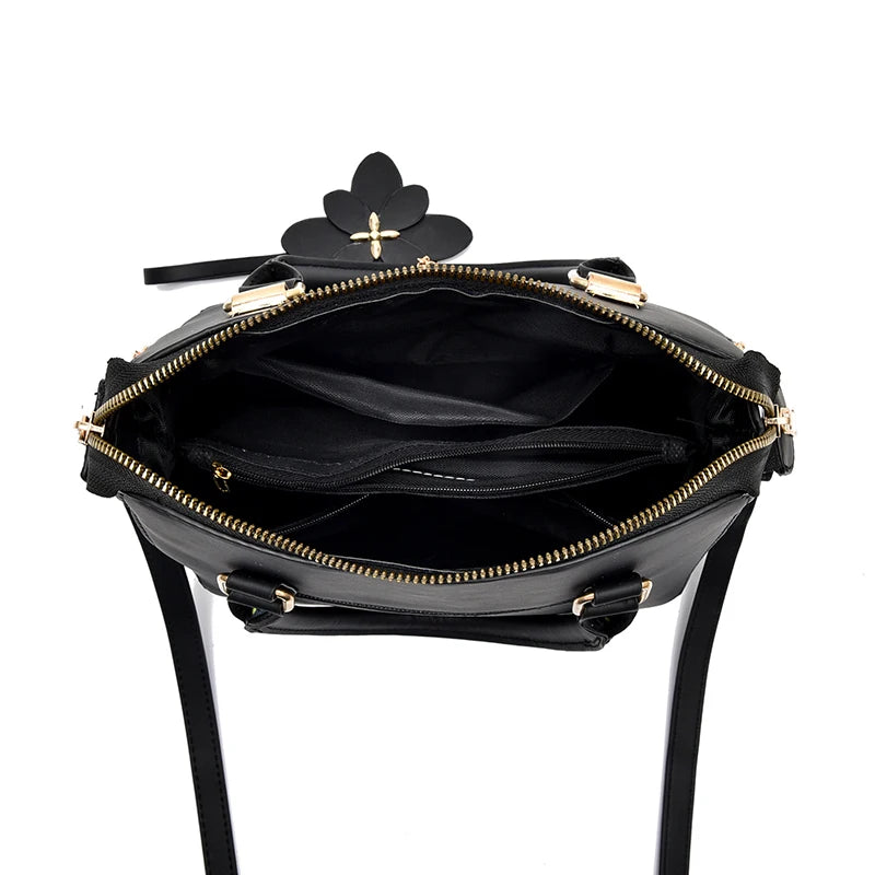 Floral Detail Shoulder Bag, Trendy Zipper Handbag Casual Crossbody Bag