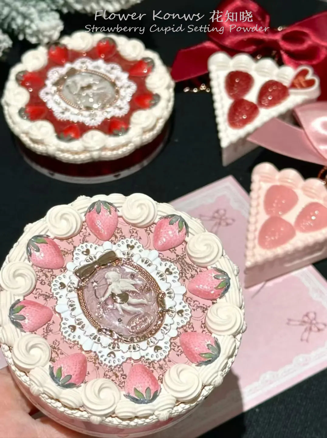 Flower Knows Strawberry Cupid Setting Powder Long-lasting Oil Control Matte Flawless With Puff Finish Color Retention Makeup
