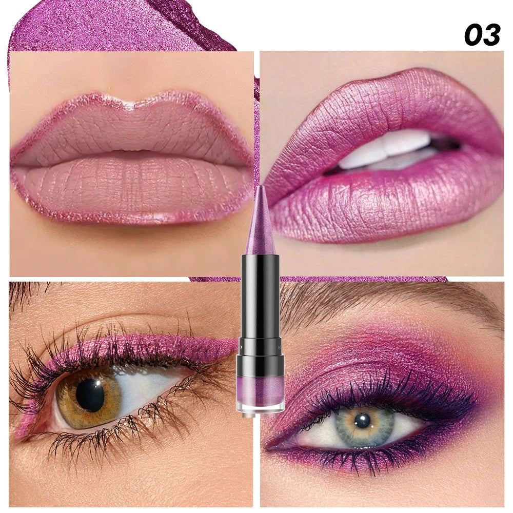 Metallic Purple Lipstick Tapered Lip Liner Waterproof Easy To Apply Non-stick Nude Red Glitter Lipstick Crayon Eyeshadow Pencil