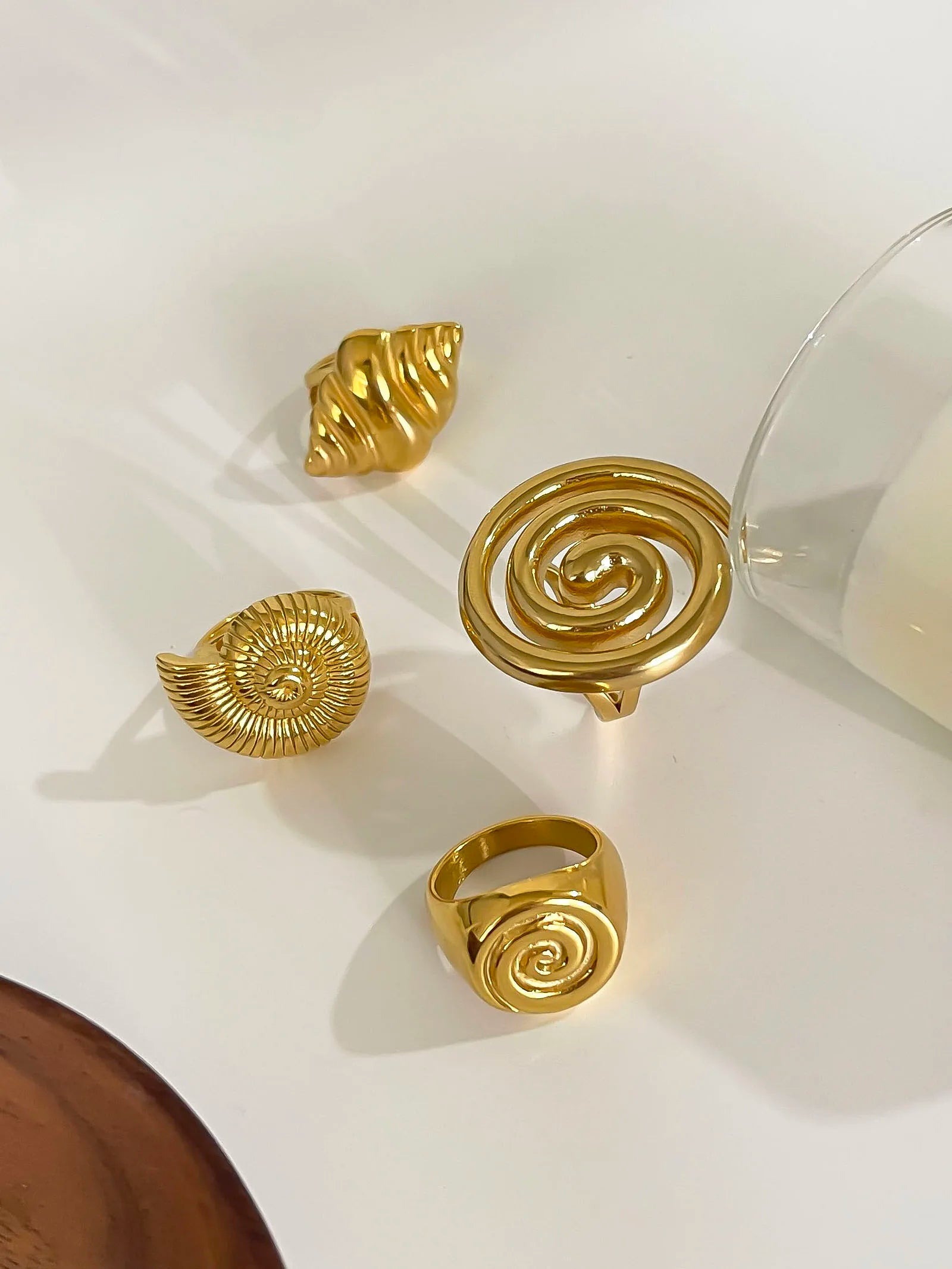 Peri'sbox Stainless Steel Conch Croissant Glossy Spiral Hollow Chunky Open Rings for Women Summer Beach Fashion Holiday Jewelry